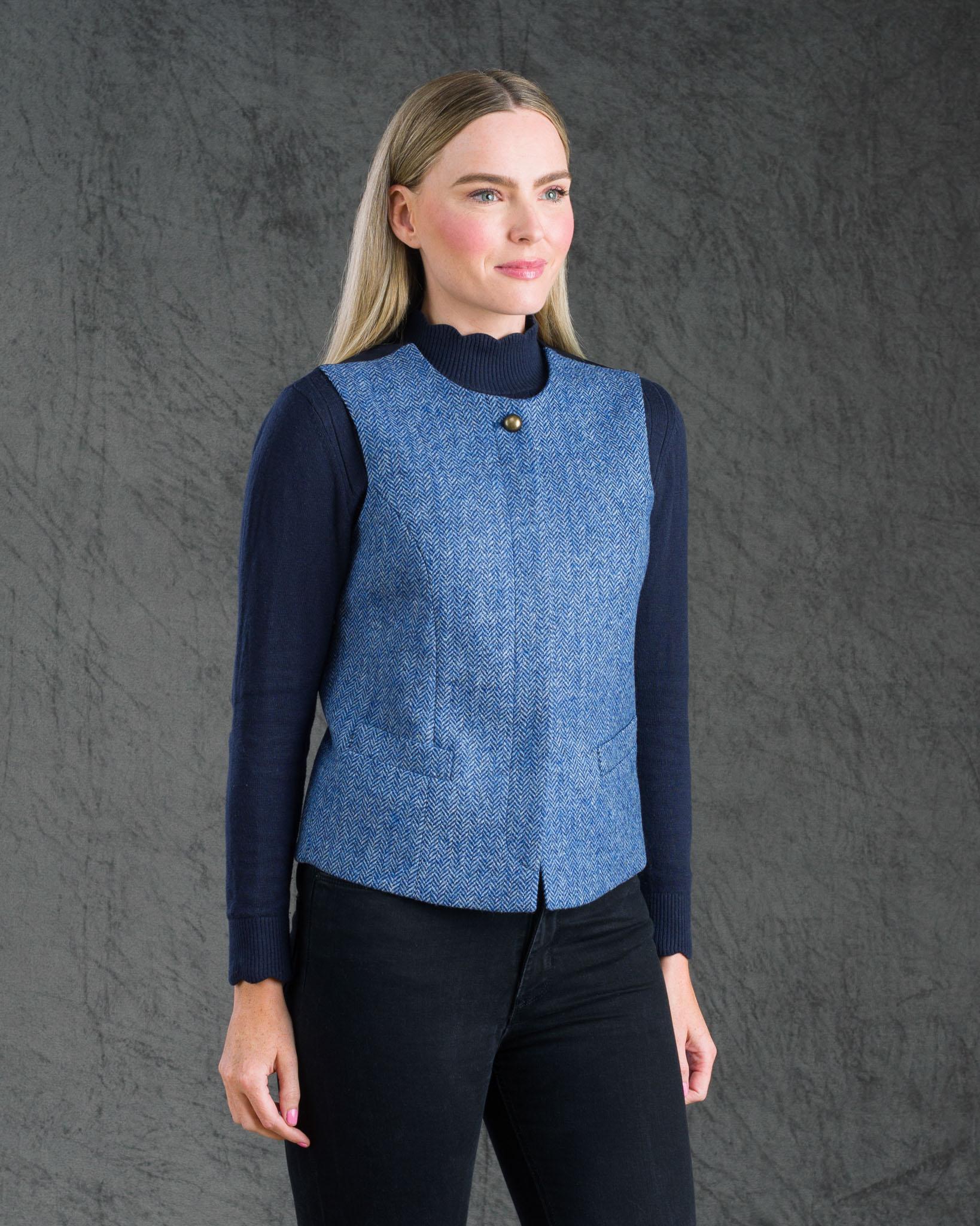 Eva Tweed Waistcoat - Light Blue Herringbone