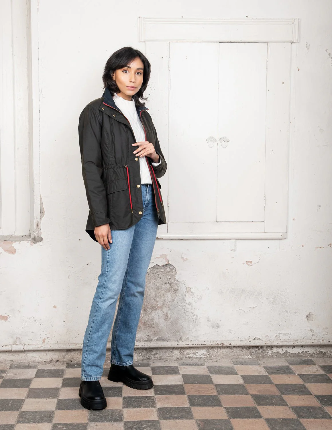 The Womenās Traditional Wax Jacket blends timeless outdoor styling with a feminine, tailored fit, creating a versatile piece designed for year-round wear. Expertly crafted from premium Scottish waxed cotton by Halley Stevensons, it offers reliable weather protection while maintaining an elegant, structured shape. Featuring princess seams, a dipped hemline, and a drawstring waist, this jacket delivers warmth, comfort, and enduring style that transitions seamlessly from countryside walks to casual city days.