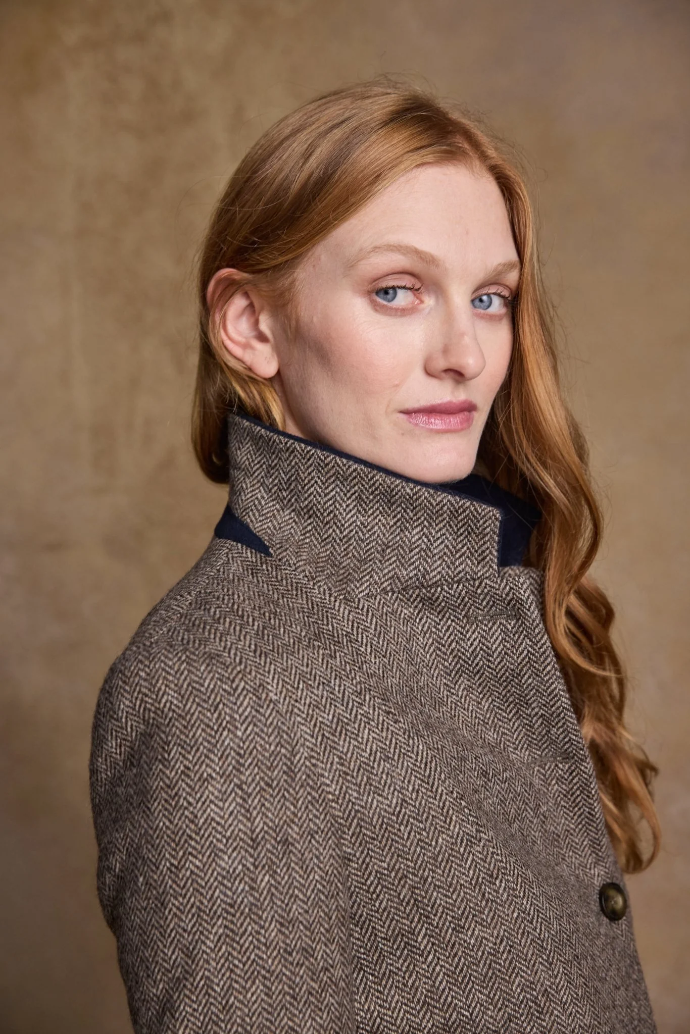 Isabella Tweed Coat - Light Tan Herringbone