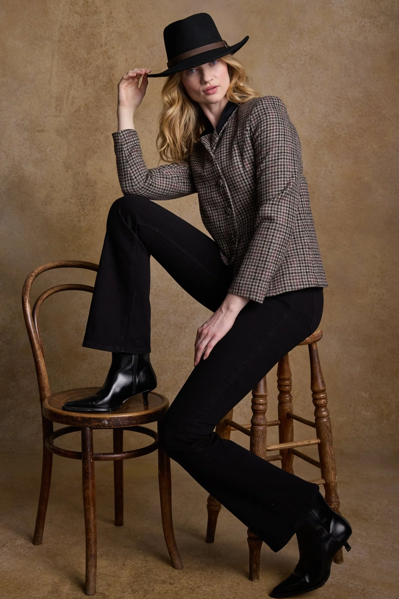 Nicole Tweed Jacket - Plum Hacking Check