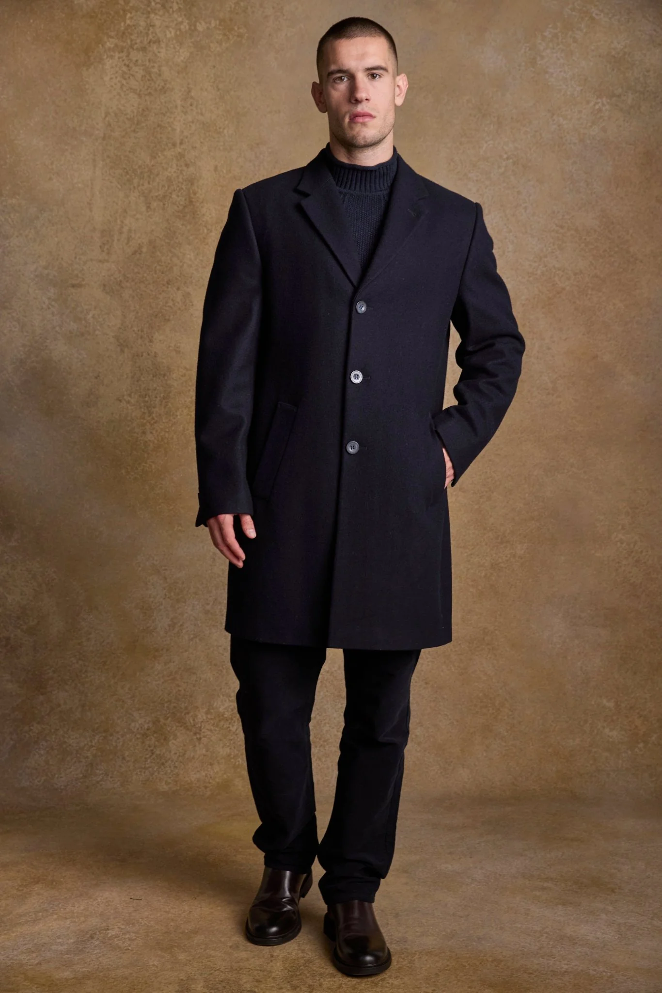 The Menās Mid-Length Yorkshire Coat delivers timeless style with a clean, structured silhouette and modern versatility. Expertly crafted from 100% Yorkshire-woven wool. Its mid-length cut and precise tailoring create a sharp, masculine profile, making it an essential outerwear piece for men who value confidence, craftsmanship, and understated style. Designed with set-in sleeves, an open collar lapel, and refined buttonhole detailing, this coat balances heritage influences with a modern aesthetic.