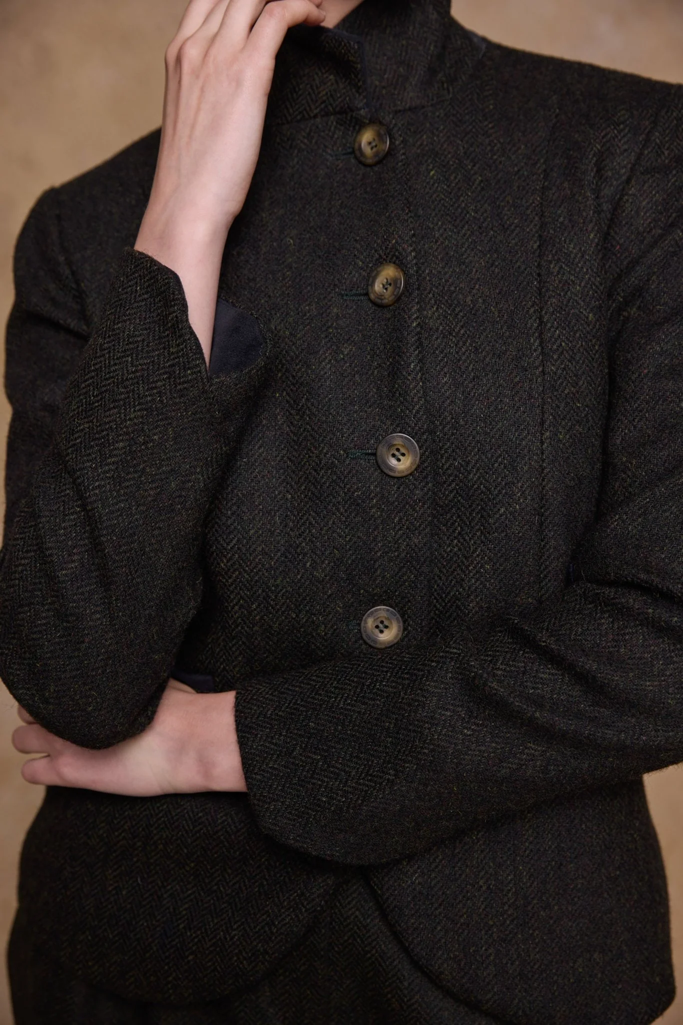Sasha Tweed Jacket - Green Herringbone